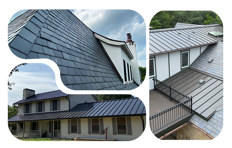 Metal roofs including steel, aluminum, tin and copper. Perfect for bungalows, ranch-style homes, cottages, historic homes and modern buildings.